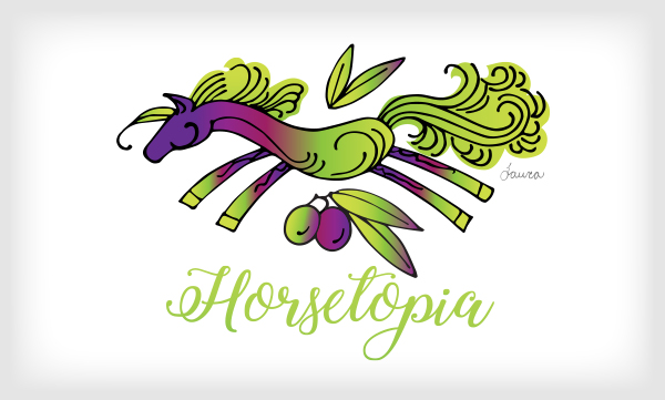 The family farm combines a love of horses with an olive grove for a unique and colorful logo to use on labels and printed materials.