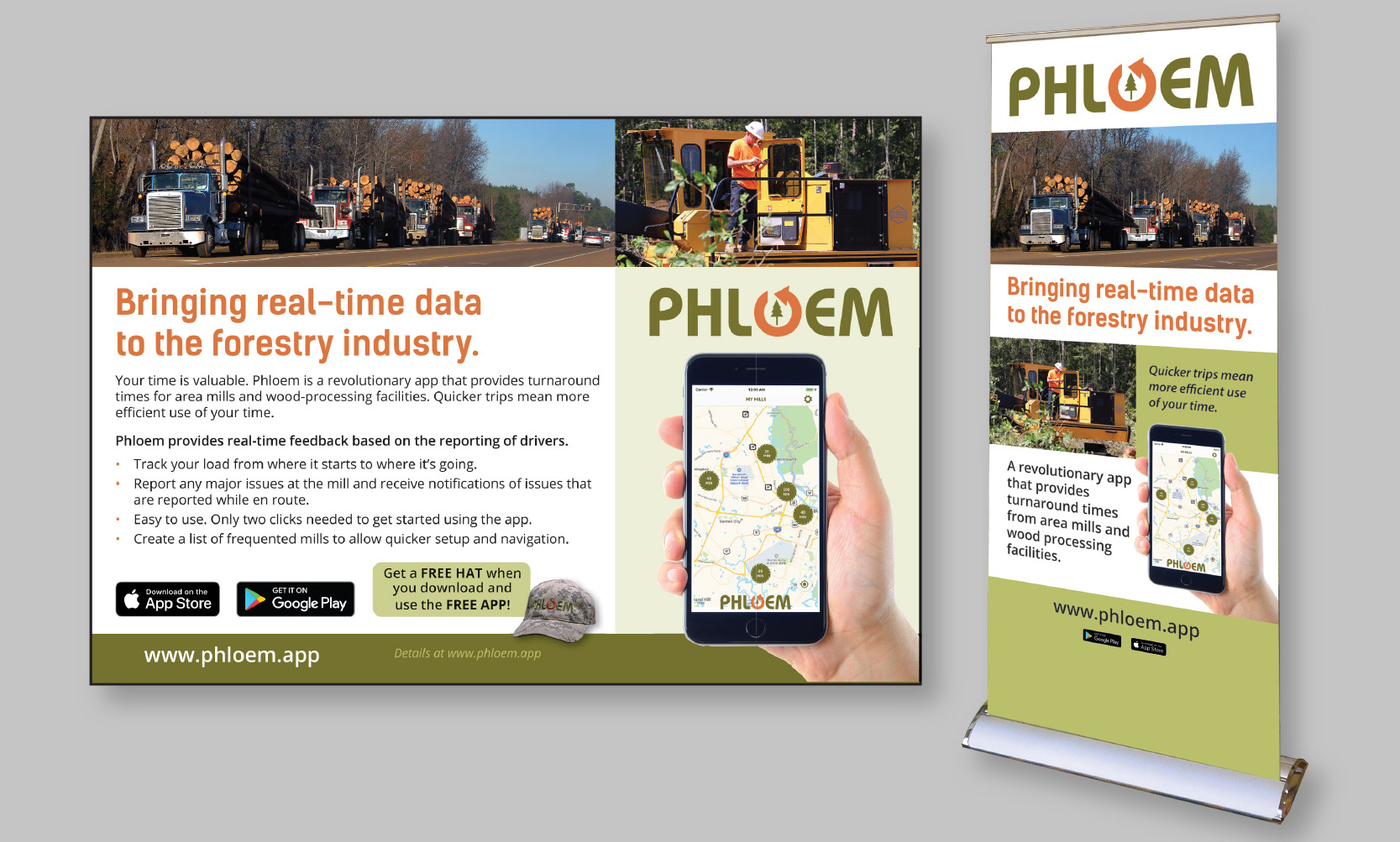 Designs for the printed magazine ads and display materials are echoed in elements used in the digital designs for the website and app to tie the brand together for a cohesive identity.